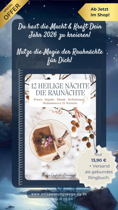 Tauche ein in die magische Welt der Rauhnächte und finde Inspiration, Klarheit und innere Stärke. In diesem Buch findest du alles, was du für eine tiefgehende und bedeutungsvolle Rauhnachtserfahrung benötigst. Für jede der 12 Nächte erwarten dich die passenden Rituale, Räucheranleitungen und Meditationen. Das Buch bietet dir außerdem ausreichend Raum zum Eintragen deiner Träume und deiner innersten Wünsche für das kommende Jahr.