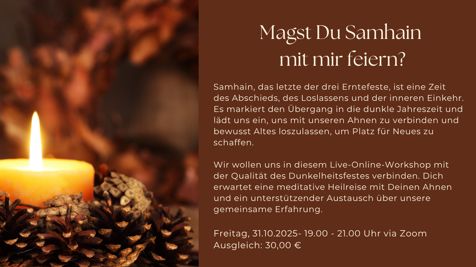 ihre Stille zurück. Mit Samhain, dem alten keltischen Neujahrsfest, beginnt die Zeit des Loslassens, der Innenschau und der Verbindung zu unseren Ahnen.